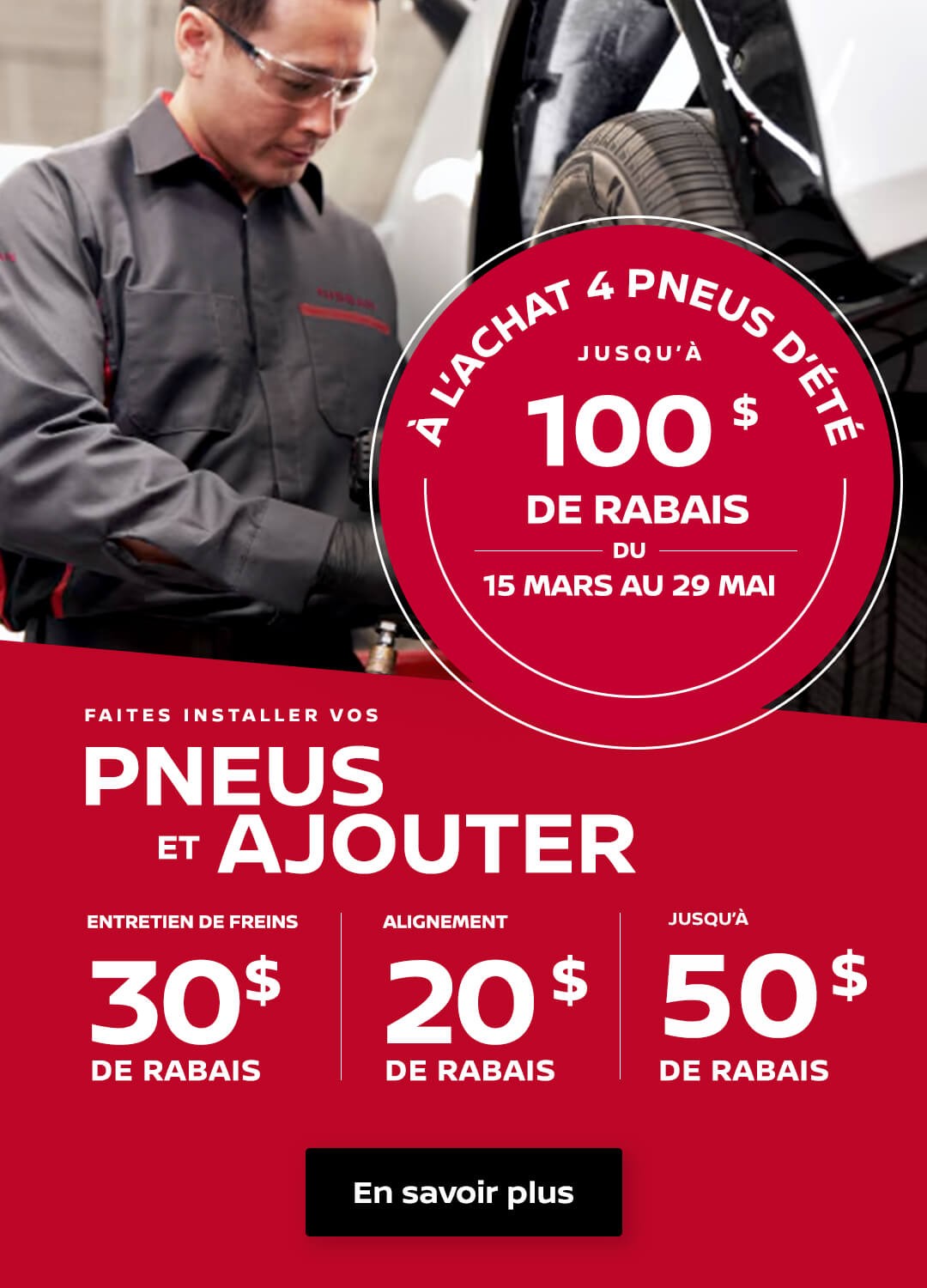 Vous souhaitez commander des pneus, des jantes ou toute autre pièce ? Notre département de pièces et accessoires est à votre disposition si vous désirez acheter de l’équipement pour votre véhicule Nissan.
