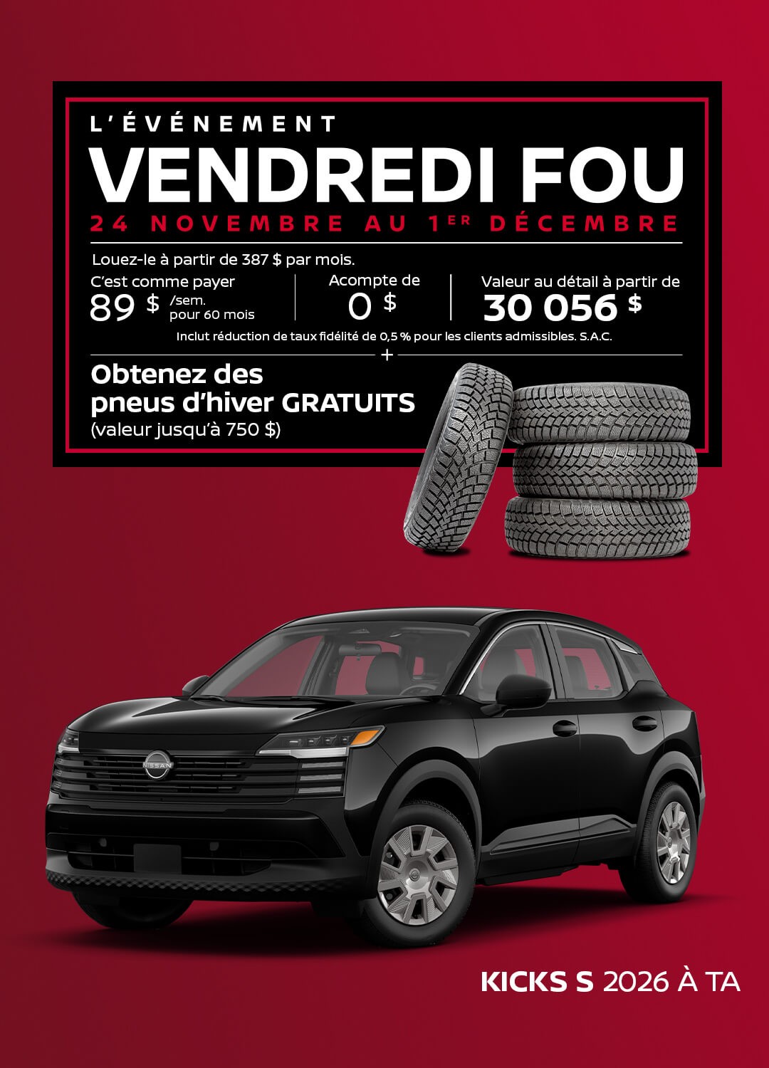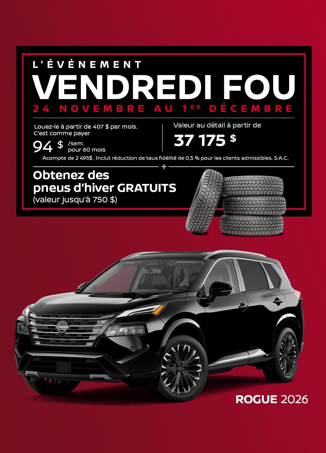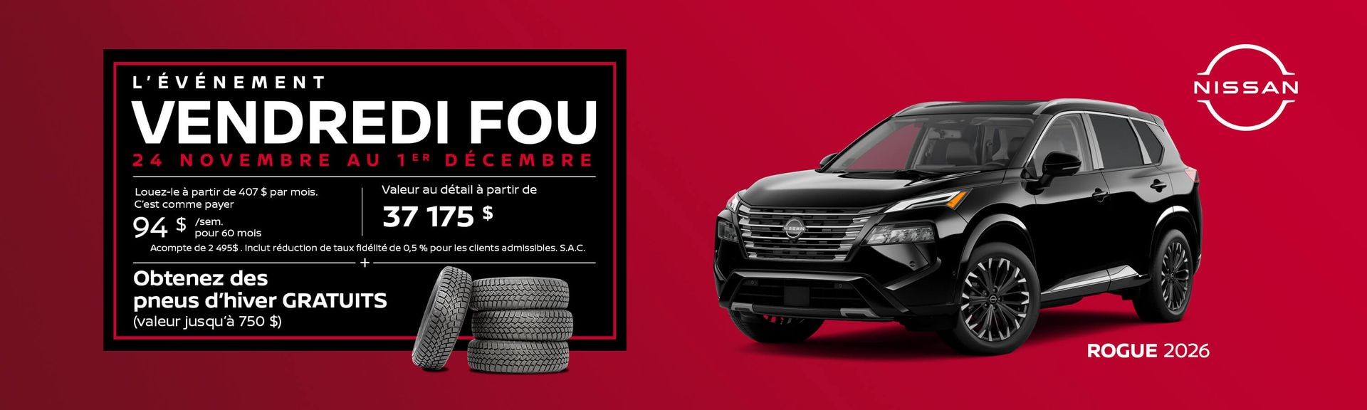 Vous souhaitez commander des pneus, des jantes ou toute autre pièce ? Notre département de pièces et accessoires est à votre disposition si vous désirez acheter de l’équipement pour votre véhicule Nissan.