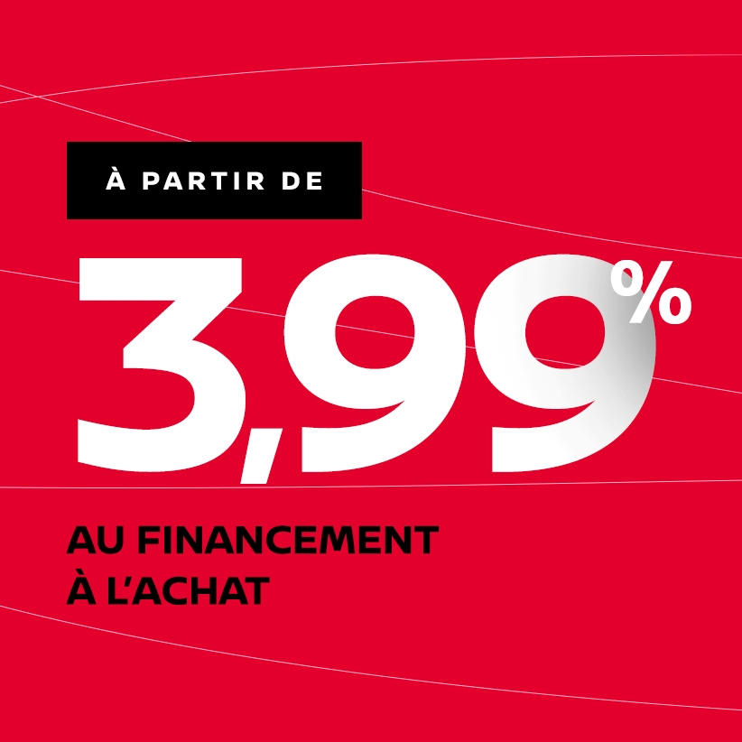 + Taux au financemenent à l'achat à partir de seulement 3,99%.